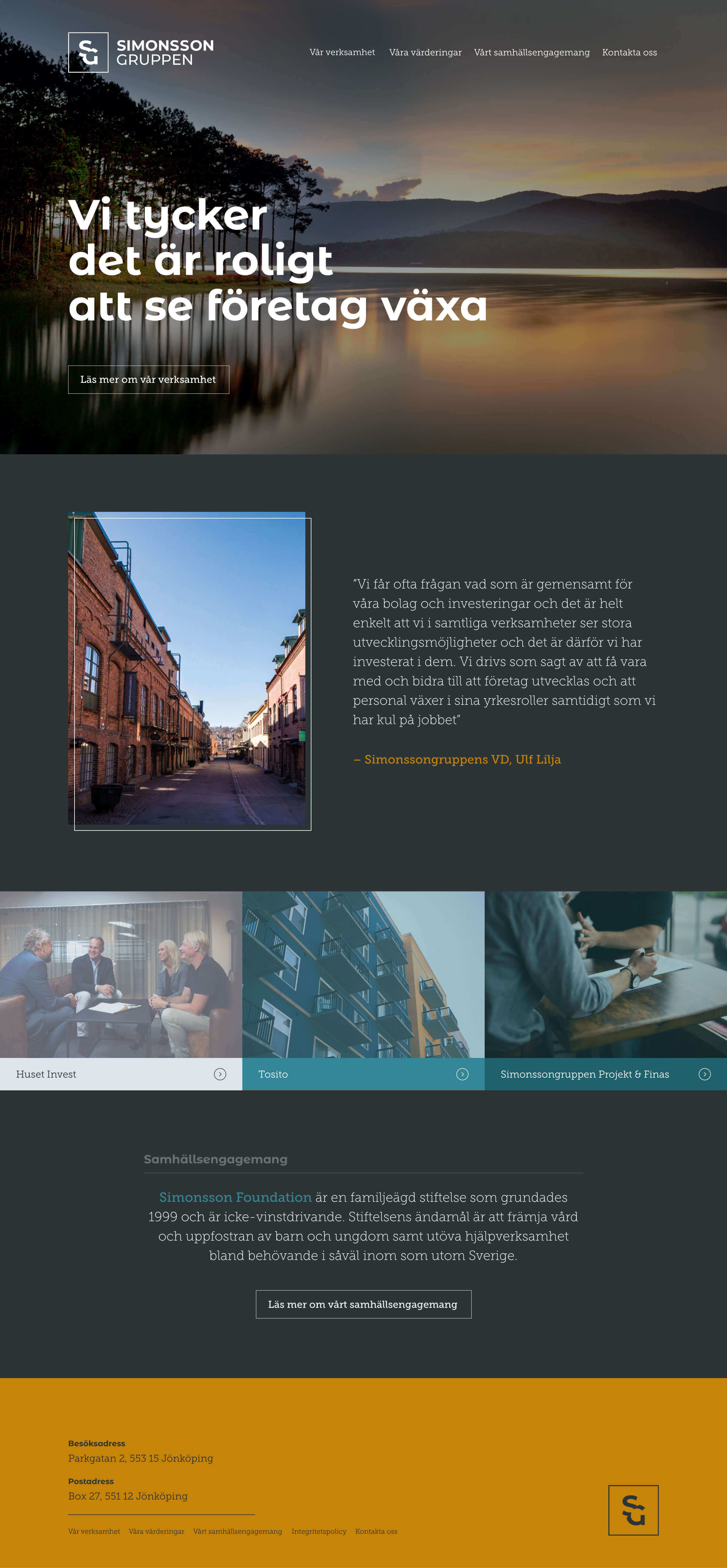 Simonssongruppen is a well-known company located in Småland that acts as a framework for others. These are some of the main things I wanted to represent in the graphical profile.